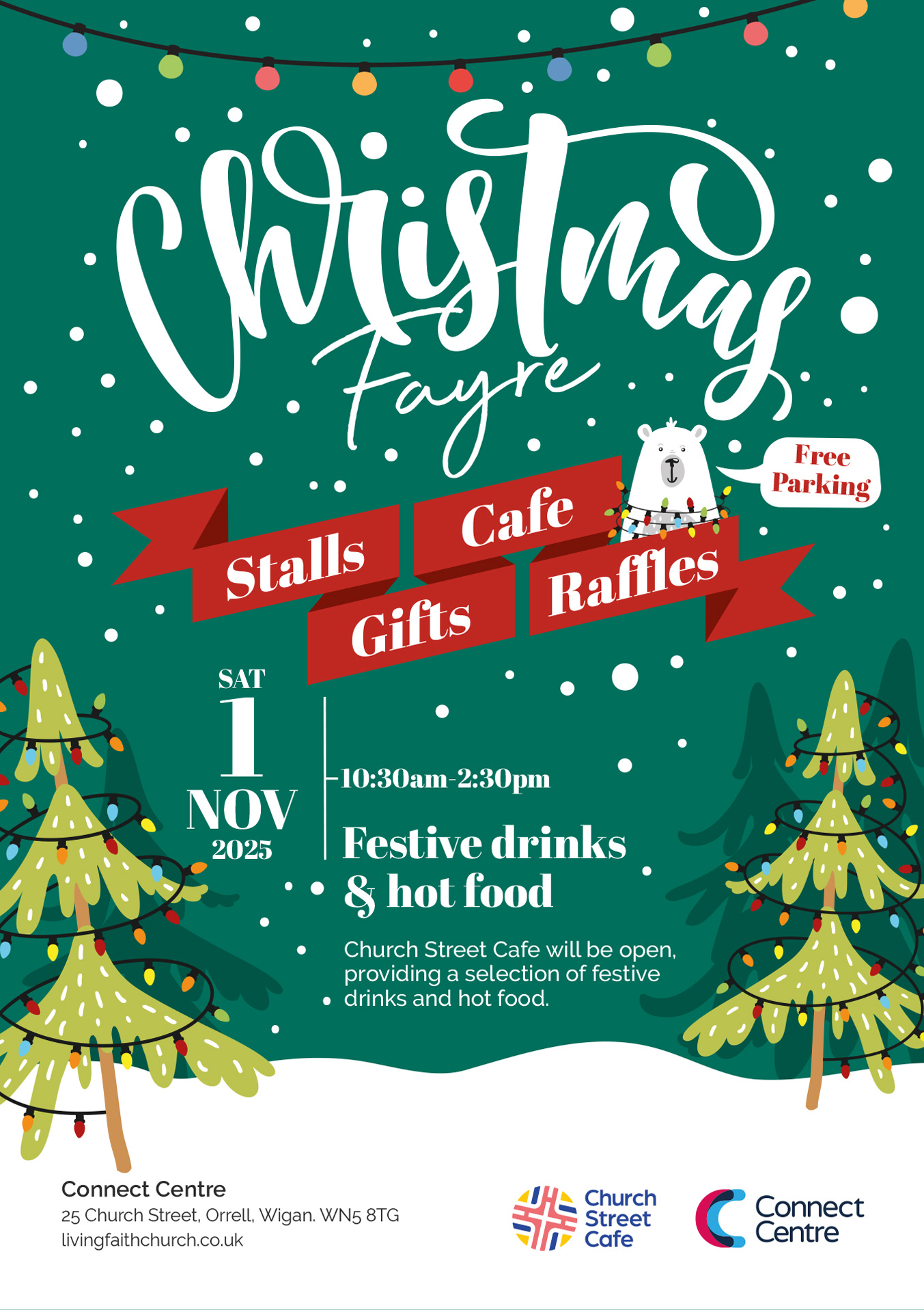 Come along and browse a wonderful selection of stalls, gifts, and raffles — perfect for getting a head start on your Christmas shopping. Church Street Café will be open throughout the day, serving hot food and drinks to keep you warm while you browse and catch up with friends.
