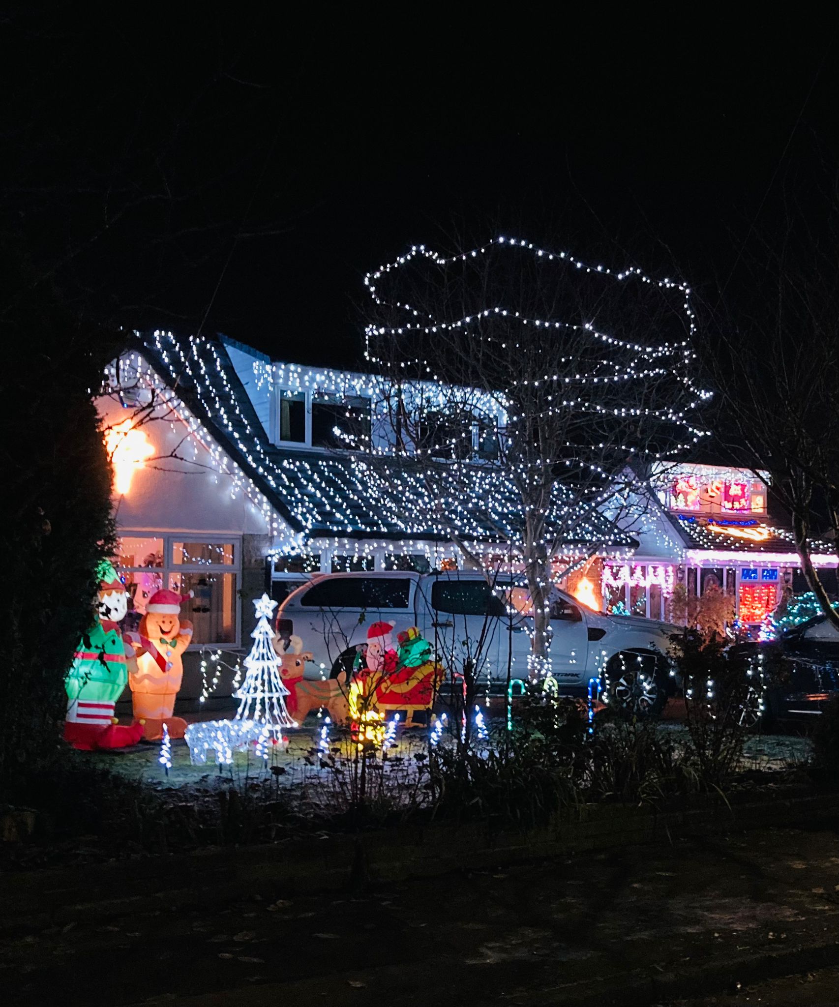 For our next house the judges were impressed with the amount of lights that covered the roof of the house. This house and their neighbours both go all out on the lights and are raising money for The North West Air Ambulance.