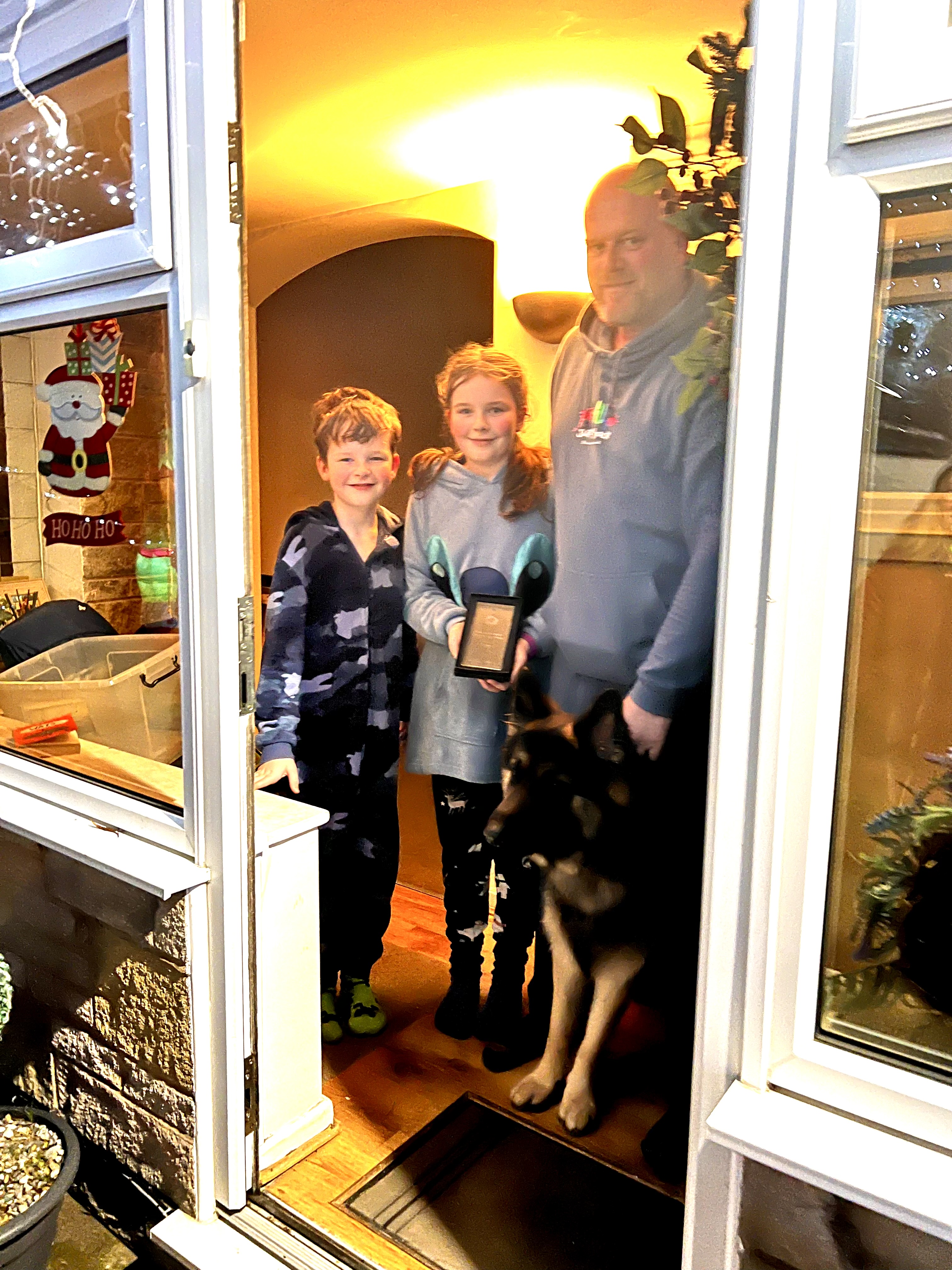 Simon & Christine where the first house to receive the award with their light creation which included a handmade sleigh that really caught the judges eye. The £50.00 charity donation will go to children's mental health.